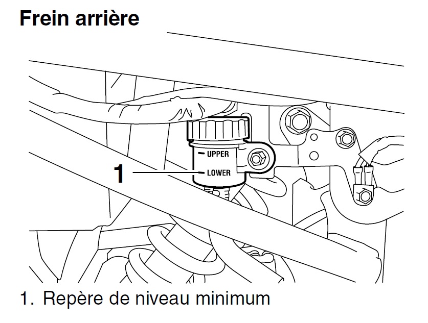 Avant : Il contrôle le niveau. Pour effectuer ce contrôle, le réservoir de liquide de frein doit être à l’horizontale.