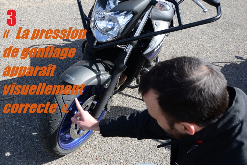 Cette vérification est identique pour toutes les motos et ne pose aucun problème sur la XJ6, elle s'opère en pratique uniquement sur le pneu avant.
