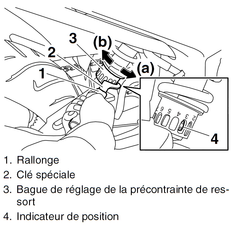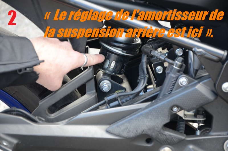 « Le réglage de l'amortisseur de la suspension arrière est réglable ici ».