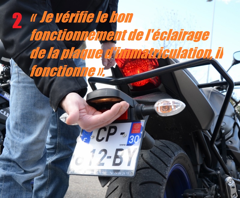 « Je vérifie le bon fonctionnement de l'éclairage de la plaque d'immatriculation, il fonctionne ».
