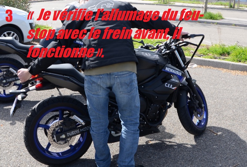 « Je vérifie l'allumage du feu-stop avec le frein avant, il fonctionne ».